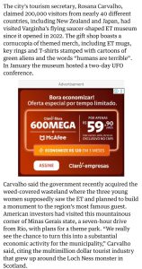 Reportagem internacional coloca Varginha em evidência no turismo ufológico